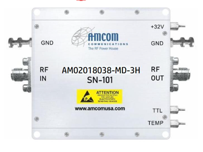 AMCOM’s AM02018038MD-3H is a broadband Power Amplifier module designed for general purpose applications