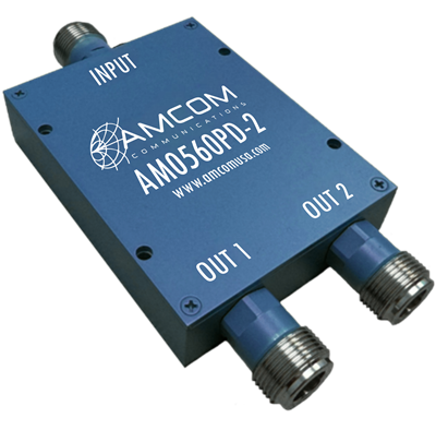 The AM0560PD-2 is a two-way power splitter that operates continuously between 500 MHz and 6 GHz